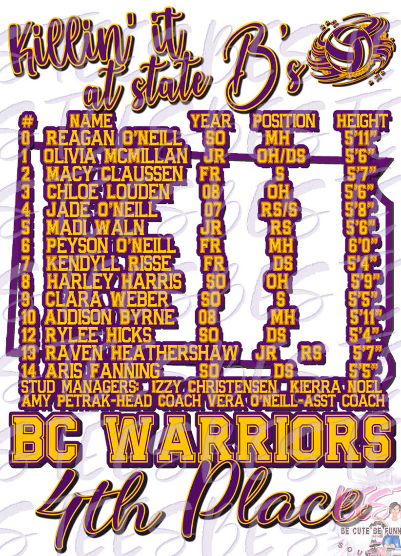 Since the official state shirts were sold out, I am came in with a hot new design! Now I have proudly added our 4th Place finish onto the design and am offering them again halfway between the others at $21.00 plus tax. The new price is because I don’t have to press these ones twice as many times but they do have the placing. The first three pictures are of the newer design including placing. The last two pictures are of the original design and how I added the placing to the existing shirt and design.