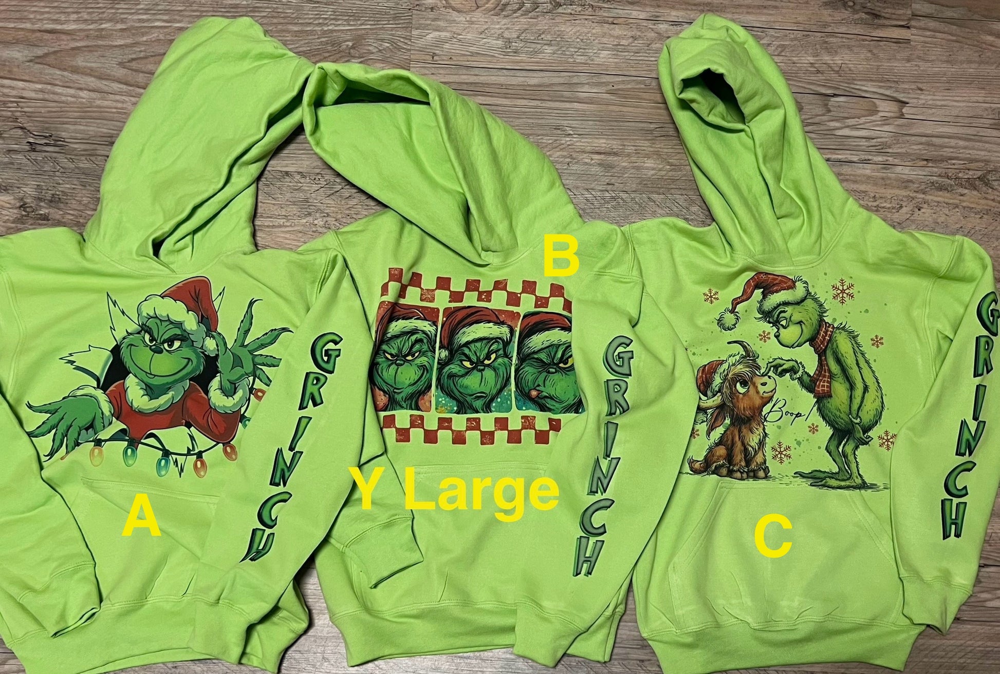 Who doesn’t love that grumpy green guy this time if year? These sassy and festive shirts are sure to brighten your holiday spirits! The nice cozy 50/50 blend hoodies will take the chill off a frosty day! HEADS UP- when I hold up the lime youth XS to the pink 4T, they ate about the same size! I will add pictures of the size charts!