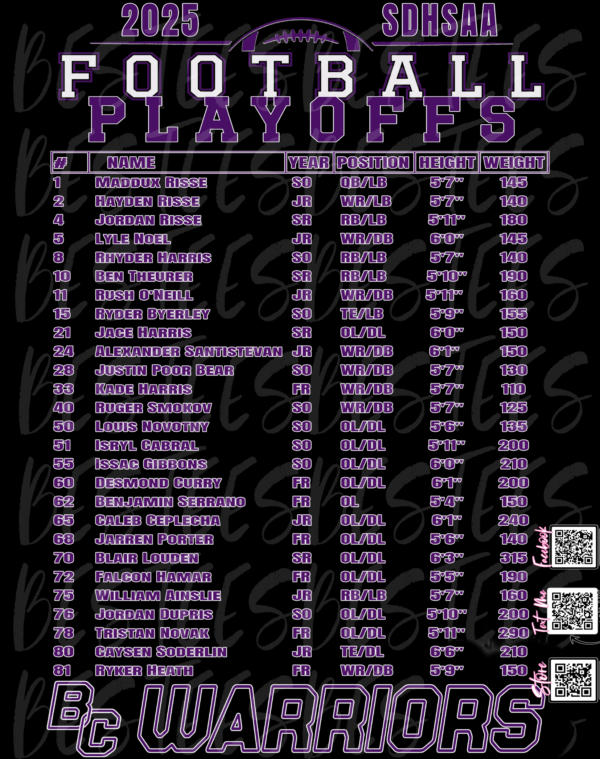 2025 BC FOOTBALL MADE IT TO THE PLAYOFFS and I ordered a few extra in case you missed the ordering cut off. Sales at this moment will be limited to stock on hand, if there is a lot of interest we can order more after Thursday.